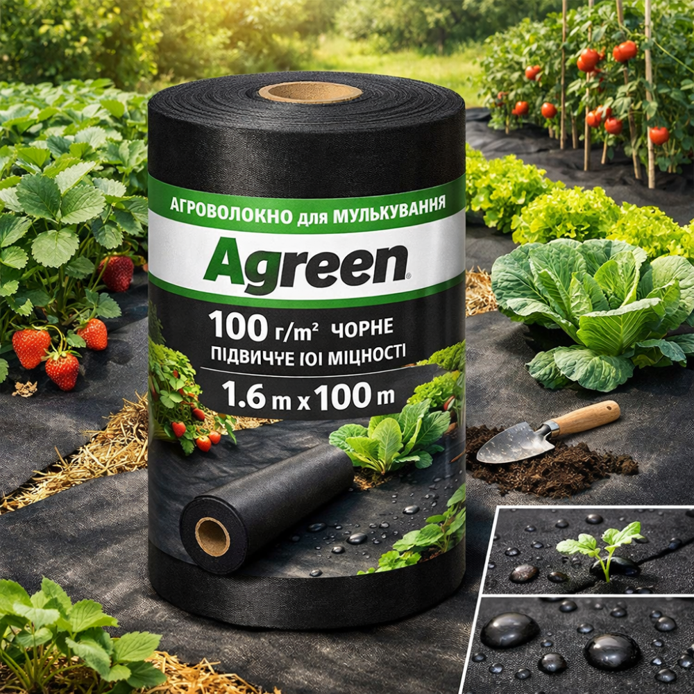 Агроволокно для мульчирования Agreen 100 г/м² черное повышенной прочности (1.6×100 м) — максимальная износостойкость и защита почвы