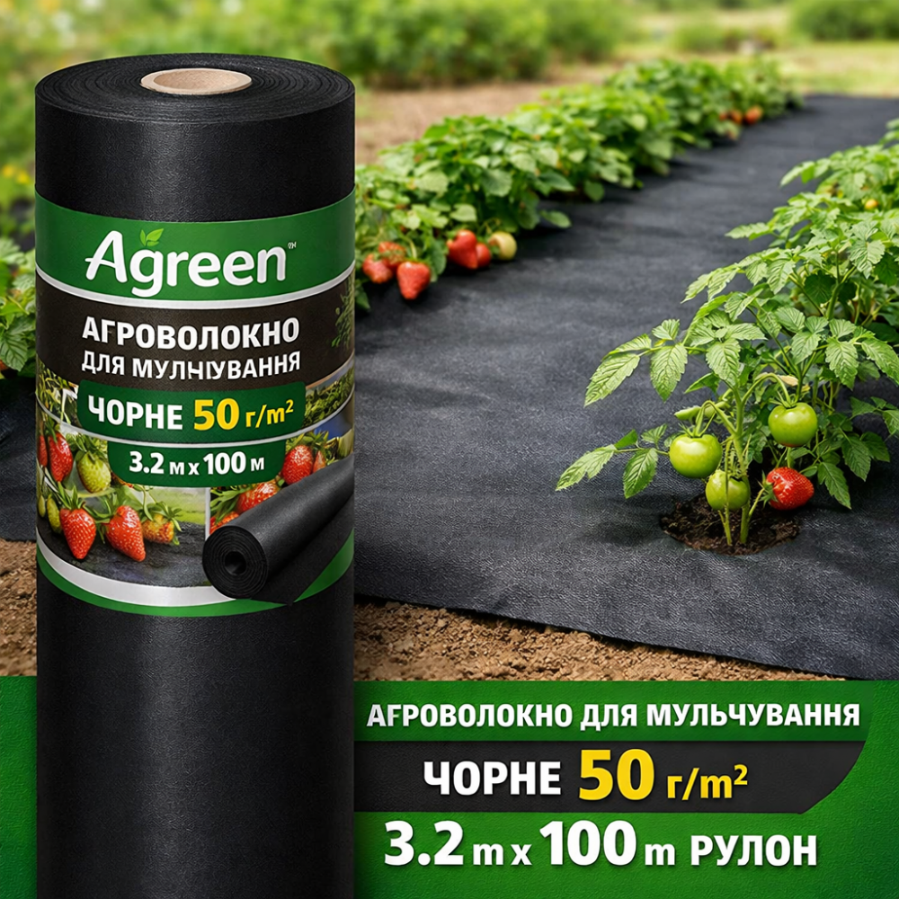 🌱 Агроволокно для мульчирования Agreen 50 г/м² черное (3,2×100 м) – эффективный контроль сорняков и сохранение влаги