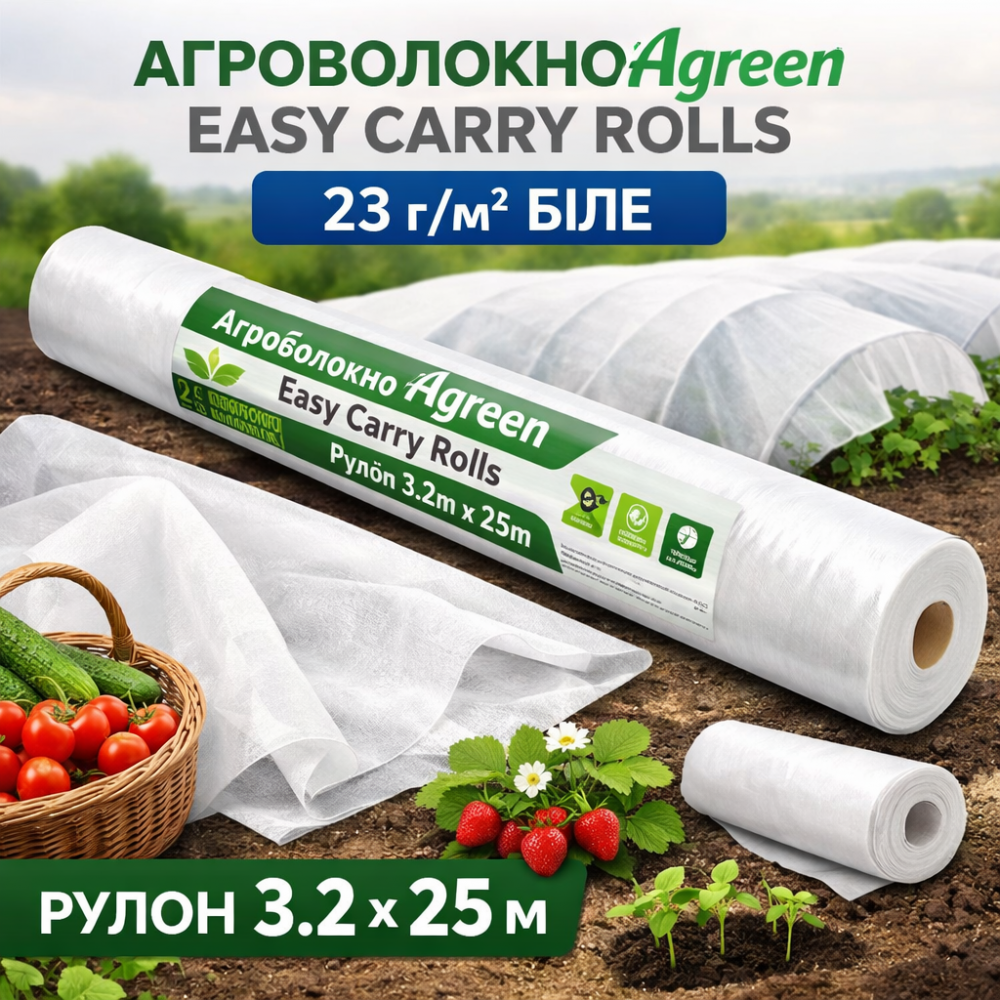 Агроволокно Agreen Easy Carry Rolls 23 г/м² (3.2×25 м) біле — легкий укривний матеріал для захисту рослин і зручного використання