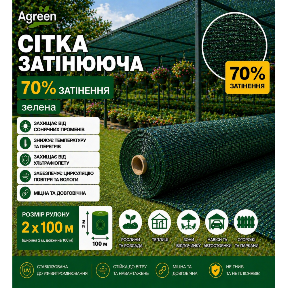 Сітка затіняюча Agreen 70% зелена (Рулон 2x100)